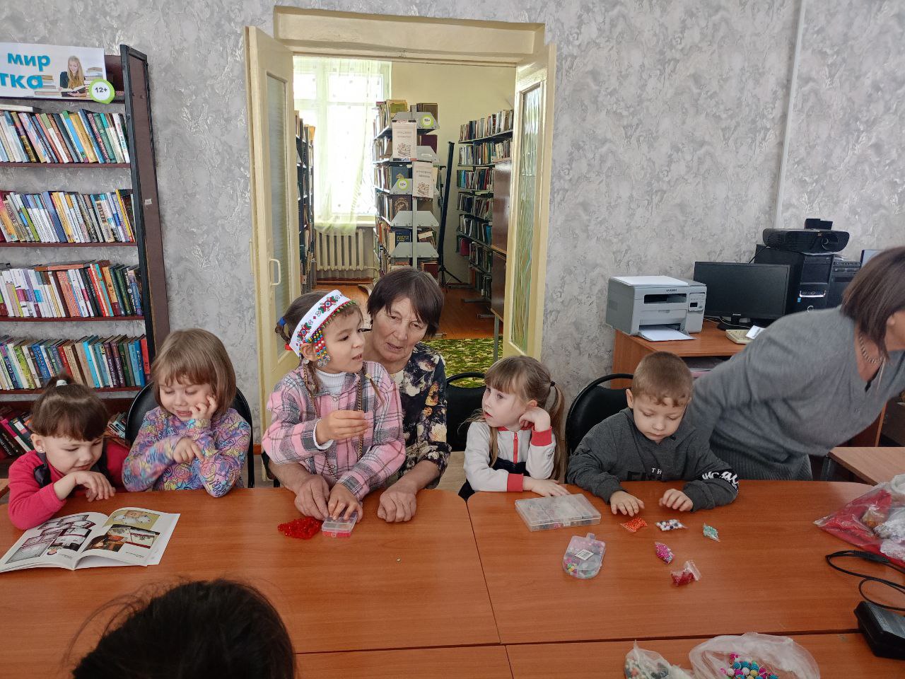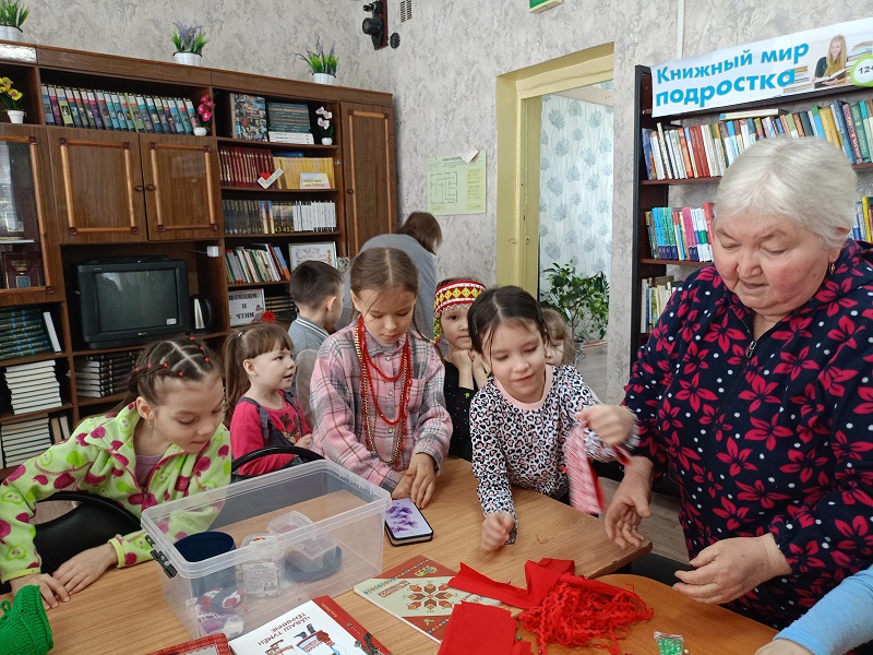 3 марта в Большеабакасинской сельской библиотеке централизованной библиотечной системы Ибресинского муниципального округа состоялась творческая встреча с представительницами старшего поколения. На встречу пришли не только взрослые, но и маленькие читатели — воспитанники детского сада. Они с большим интересом окунулись в удивительный мир творчества и с удовольствием учились создавать своими руками уникальные изделия. Библиотекарь показала и рассказала о книгах, где раскрывается многообразие традиционных и современных костюмов, что позволило участникам глубже погрузиться в культуру и традиции своего народа. Далее под руководством увлечённых рукоделием бабушек участники попробовали изготовить женский чувашский головной убор — масмак. В зале царила атмосфера тепла и заботы, а также уважения к традициям. Бабушки с любовью рассказывали о старинных техниках рукоделия, делились секретами мастерства и вдохновляли участников на создание собственных шедевров.