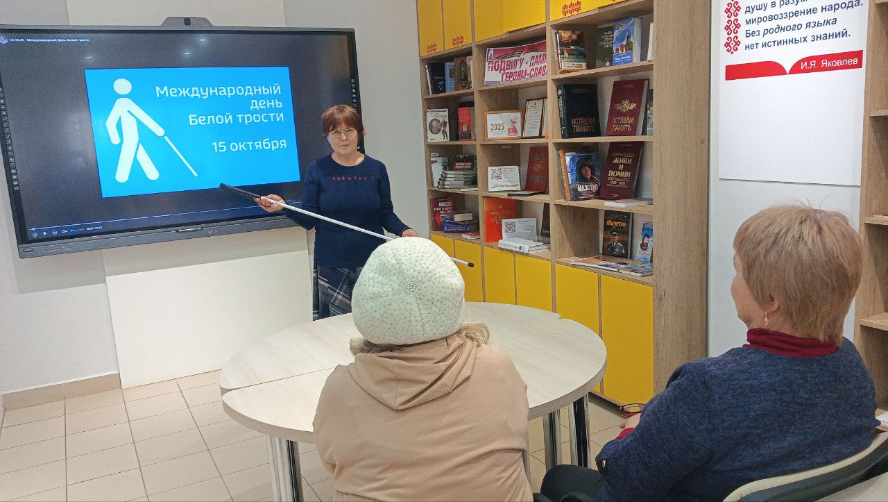 В Центральной модельной библиотеке централизованной библиотечной системы Ибресинского муниципального округа прошла тематическая программа, посвященная Международному Дню белой трости, «Человек с белой тростью». Председатель местной Вурнарской организации Всероссийского общества слепых Г. М. Мясникова рассказала об истории появления Дня белой трости, о правилах пользования тростью и продемонстрировала возможности ее применения. Участники программы, в клубе «Надежда» (Ибресинская группа Вурнарского отделения ВОС), просмотрели видеоролик про собак-поводырей. Главный библиотекарь отдела обслуживания О. В. Прохорова провела обзор выставки «Чтение в особом формате» и представила издания специальных форматов для слепых и слабовидящих из Чувашской республиканской специальной библиотеки им. Л. Н. Толстого г. Чебоксары. Особенной популярностью среди читателей данной категории пользуются книги с укрупненным шрифтом и «говорящие книги», которые необходимо воспроизводить на специальных флэш-проигрывателях. Участники мероприятия расходились по домам с хорошим настроением и с книгами.