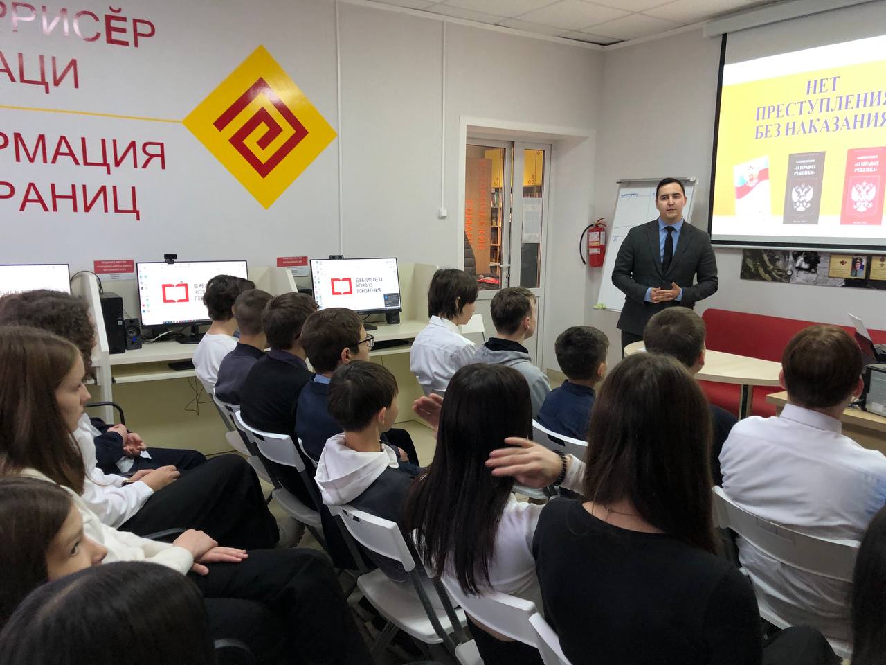 20 ноября, в рамках Всемирного дня ребенка, в Центральной библиотеке централизованной библиотечной системы Ибресинского муниципального округа состоялась просветительская встреча «Нет преступления без наказания». Перед участниками, учащимися 8 «а» класса Ибресинской СОШ № 1, выступил помощник прокурора Ибресинского района Дмитрий Ермаков. В доверительной беседе он подробно разъяснил виды правонарушений, степень ответственности за них. Он рассказал ребятам о ключевом юридическом принципе «Нет преступления без наказания». Разговор шел не только о теории, но и о самых частых правонарушениях в молодежной среде. Подростки узнали, какая ответственность наступает за те или иные проступки, а также вспомнили о своих фундаментальных правах.