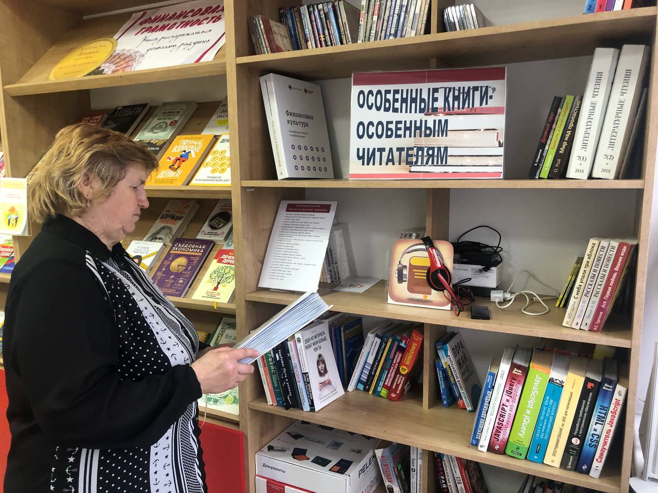 В информационном центре читатели посетили выставку специальных изданий «Особенные книги - особенным читателям», предоставленные Чувашской республиканской специальной библиотеки им Л. Н. Толстого. Это книги со шрифтом Брайля и укрупненным текстом, предназначенные для обслуживания незрячих и слабовидящих читателей, а также издания малых форм, подготовленные информационным центром Центральной библиотеки. В этом же зале участникам мероприятия рассказали, как быстро и точно получить ответы на юридические вопросы, объяснили, как с помощью справочной правовой системы «КонсультантПлюс» за несколько минут найти любой законодательный акт, льготу или программу поддержки, касающуюся людей с инвалидностью.