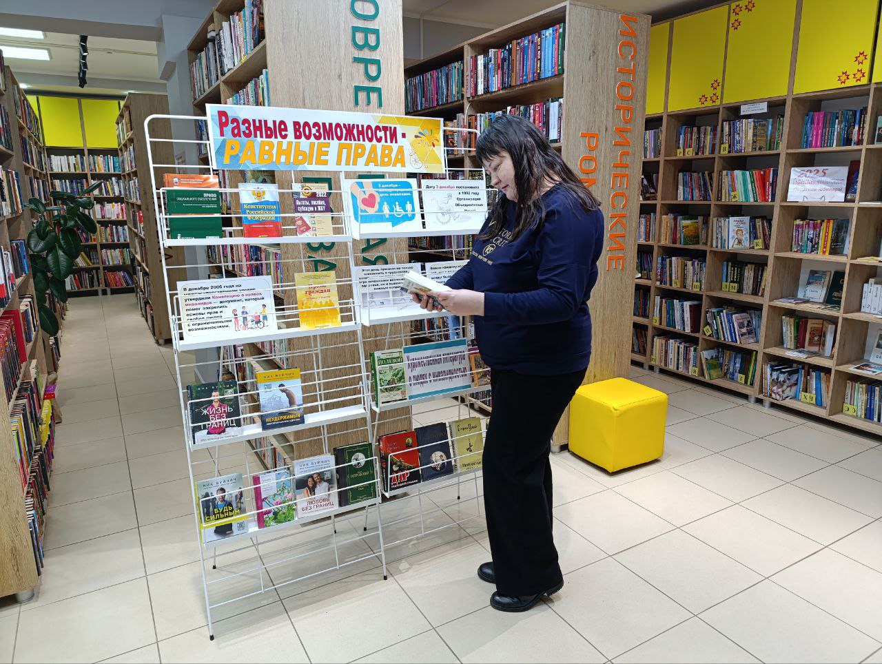 В центре чтения была представлена книжная выставка «Разные возможности – равные права». Библиотекарь познакомила пользователей с вдохновляющими биографиями людей, где герои с инвалидностью - сильные личности. Книги, представленные на выставке, знакомы каждому читателю: «Повесть о настоящем человеке» Б. Полевого, «Слепой музыкант» В. Короленко, «Нетерпение сердца» С. Цвейга и др.