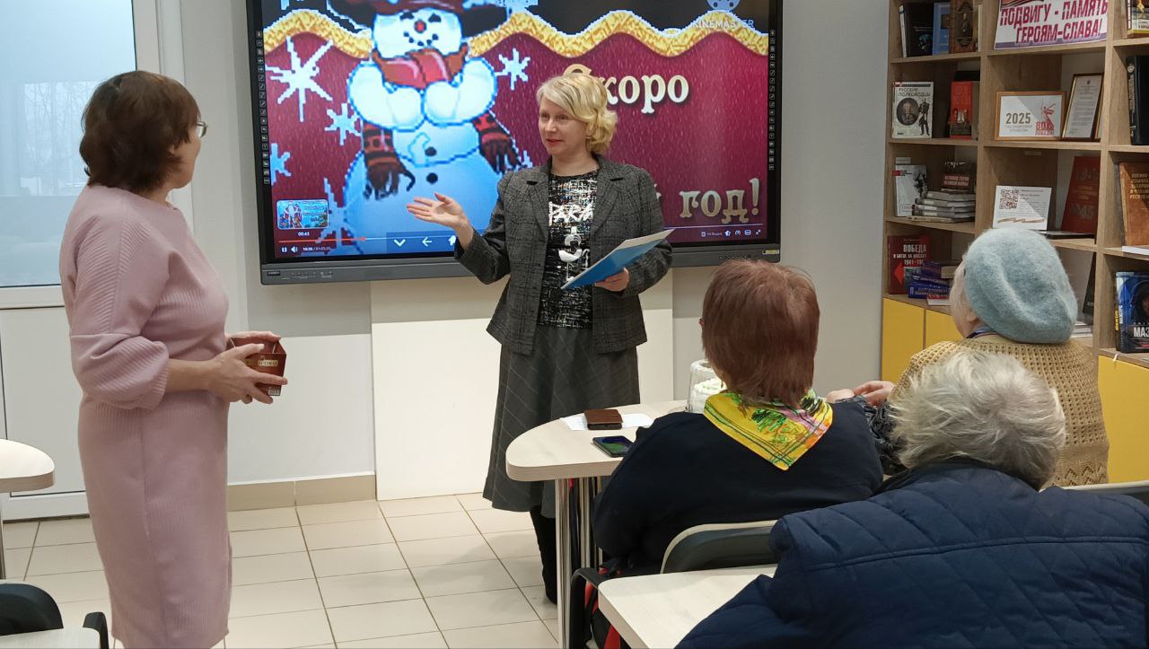 Галина Михайловна совместно с главным библиотекарем отдела обслуживания О. В. Прохоровой, разыграли призы среди участников в конкурсах «Знаток Нового года», «Зимняя песенка», «Символы года» и провели игры «Крестики-нолики» и «Часики-то тикают». Дополнил программу конкурс караоке новогодних песен. Все участники получили новогодние подарки.