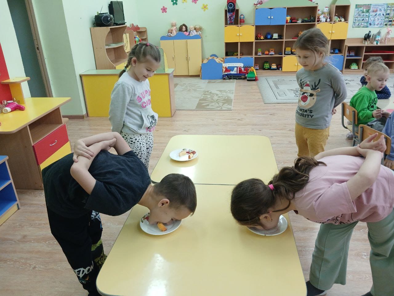 В качестве необычного испытания Татьяна Крылова предложила ребятам попробовать съесть яблоко без помощи рук. Дети азартно пытались справиться с задачей, поддерживая и подбадривая друг друга.