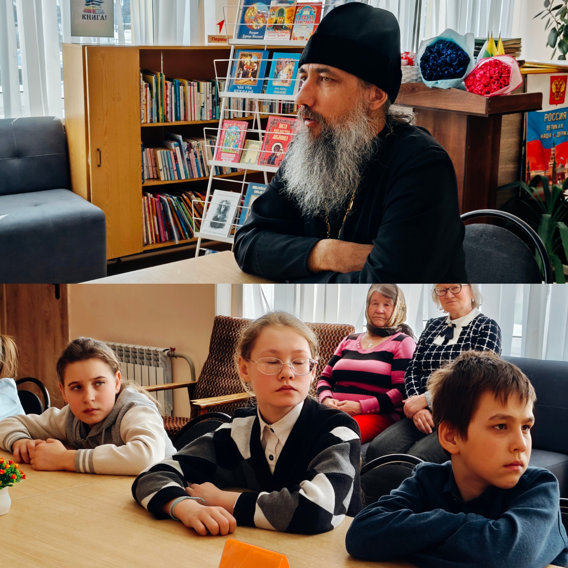 12 марта в Малокармалинской сельской библиотеке им. А.В. Рогожина централизованной библиотечной системы Ибресинского муниципального округа было особенно душевно. На встречу с обучающимися 1-5 классов Малокармалинской средней общеобразовательной школы пригласили настоятеля Свято-Троицкого храма села Малые Кармалы иеромонаха Агафона. Встреча прошла в рамках совместной программы храма и библиотеки «Свет православия».