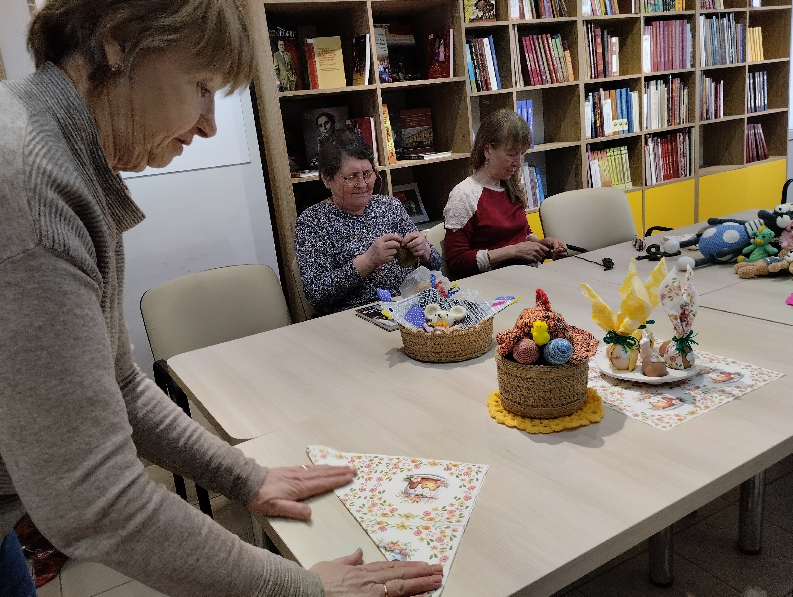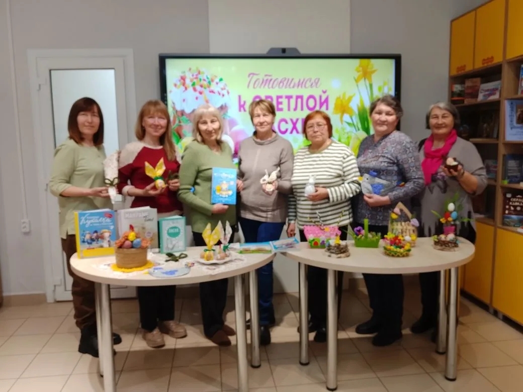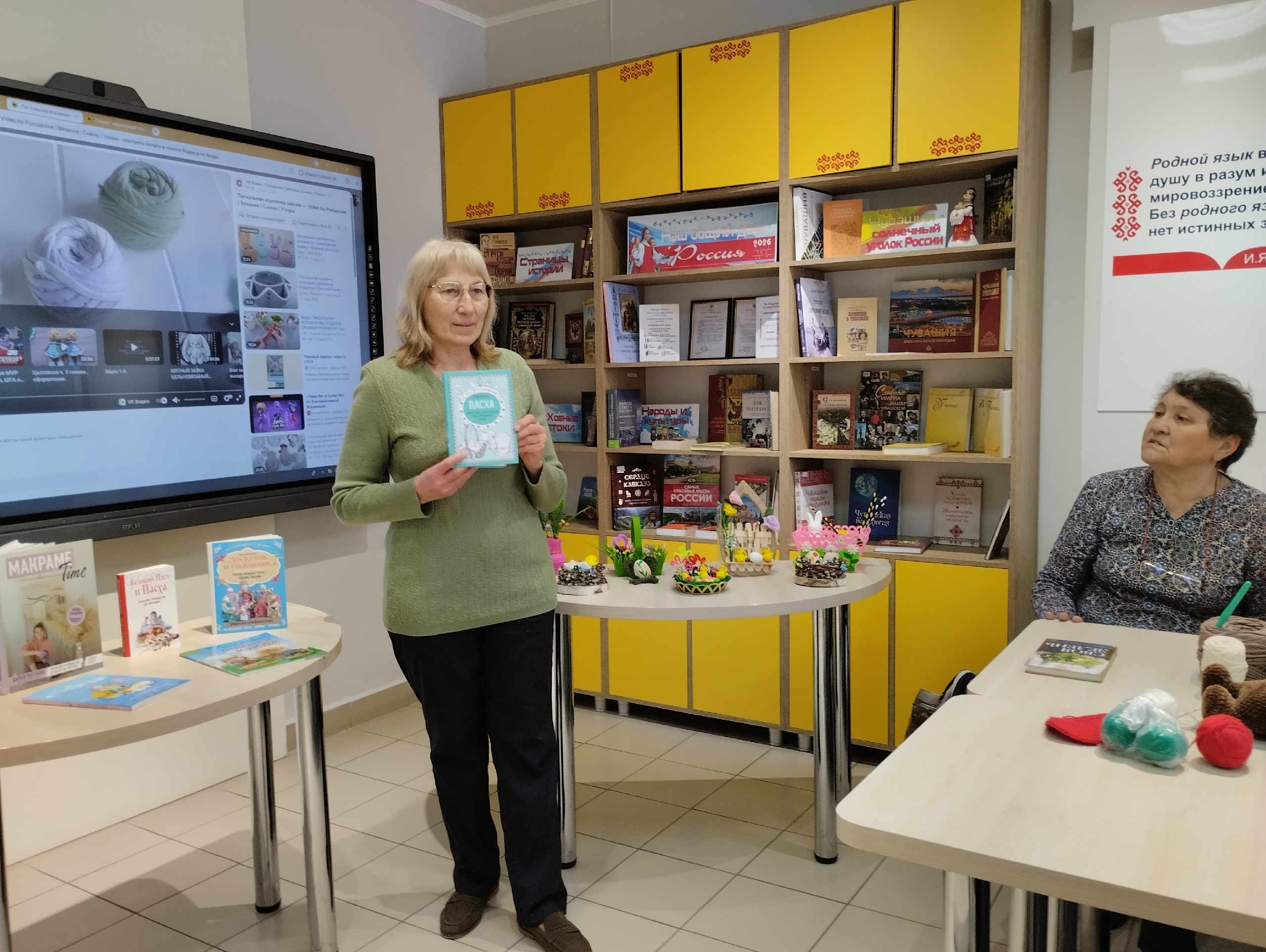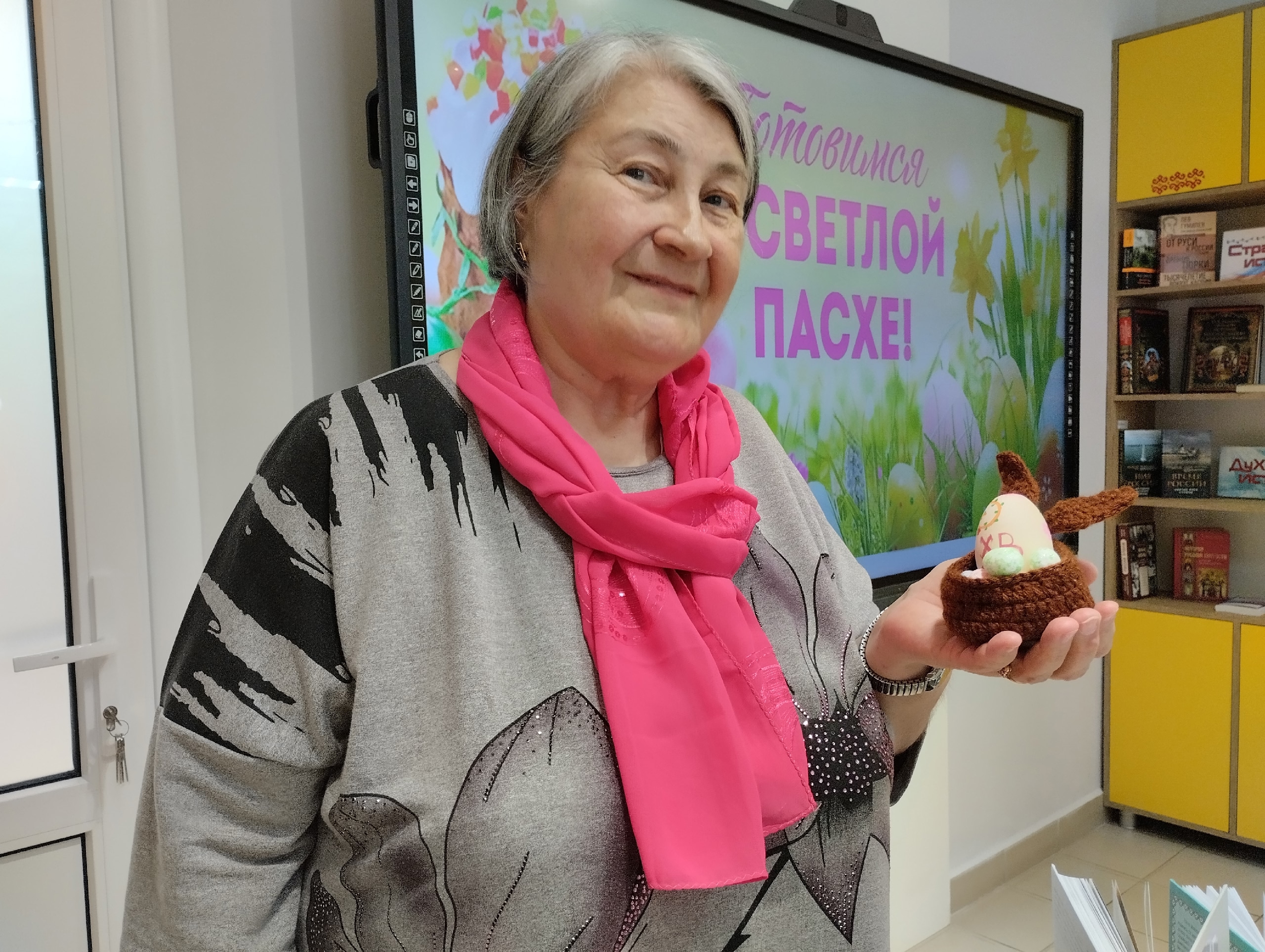 Особую атмосферу занятию придала импровизированная выставка поделок на пасхальную тему. Авторами работ выступили «серебряные» волонтёры Ибресинского ЦСОН и участницы Центра общения старшего поколения «Серебряный возраст» (действует при клиентской службе Социального фонда России в Ибресинском муниципальном округе). Их творческие работы вдохновили всех присутствующих на новые идеи. В завершение встречи Галина Степанова, главный библиотекарь отдела обслуживания, познакомила гостей с тематической подборкой книг по рукоделию. В изданиях можно найти как базовые схемы вязания игрушек амигуруми и макраме, так и необычные идеи для пасхального декора.