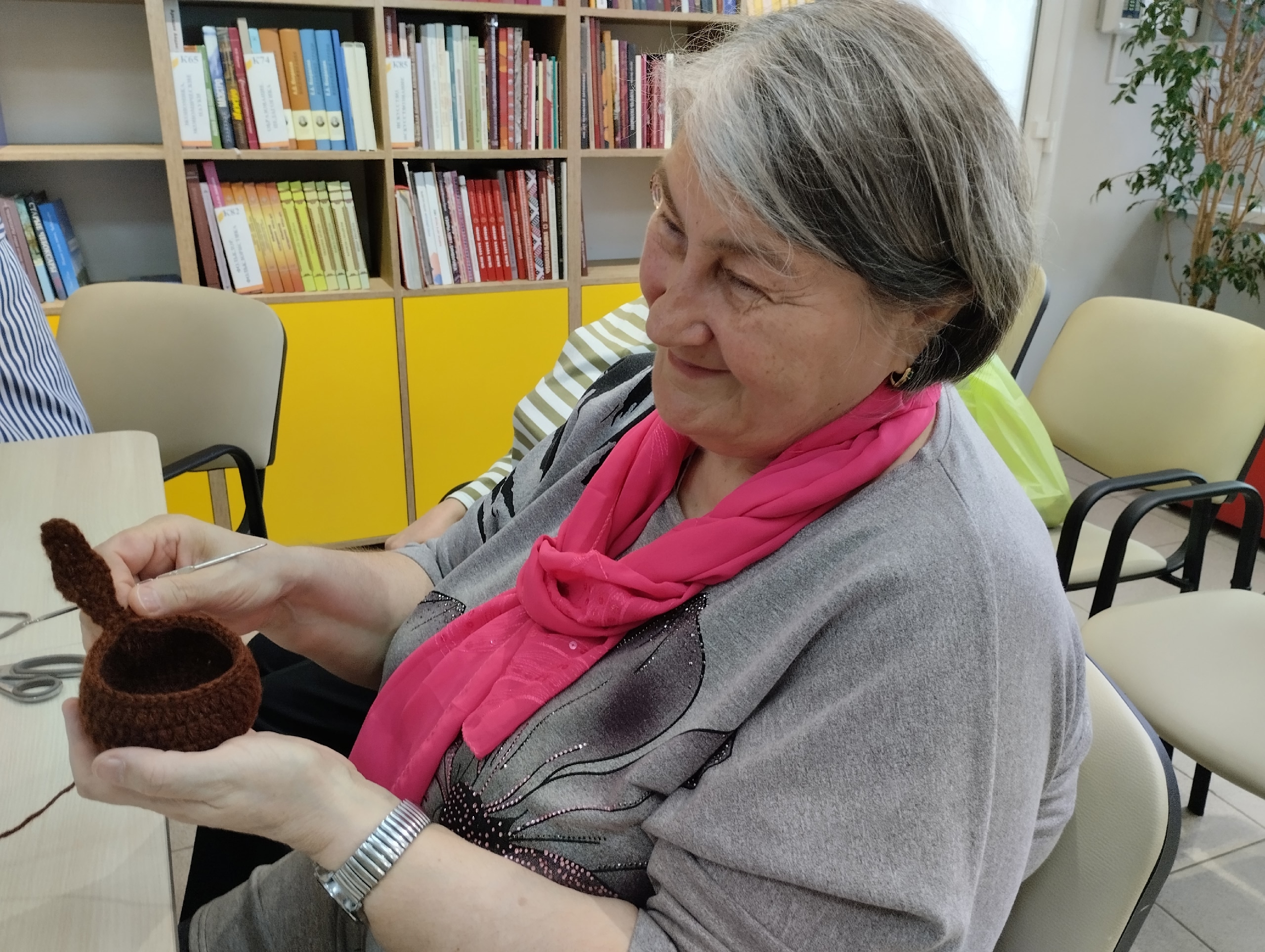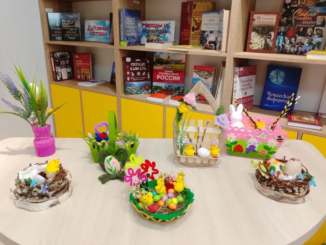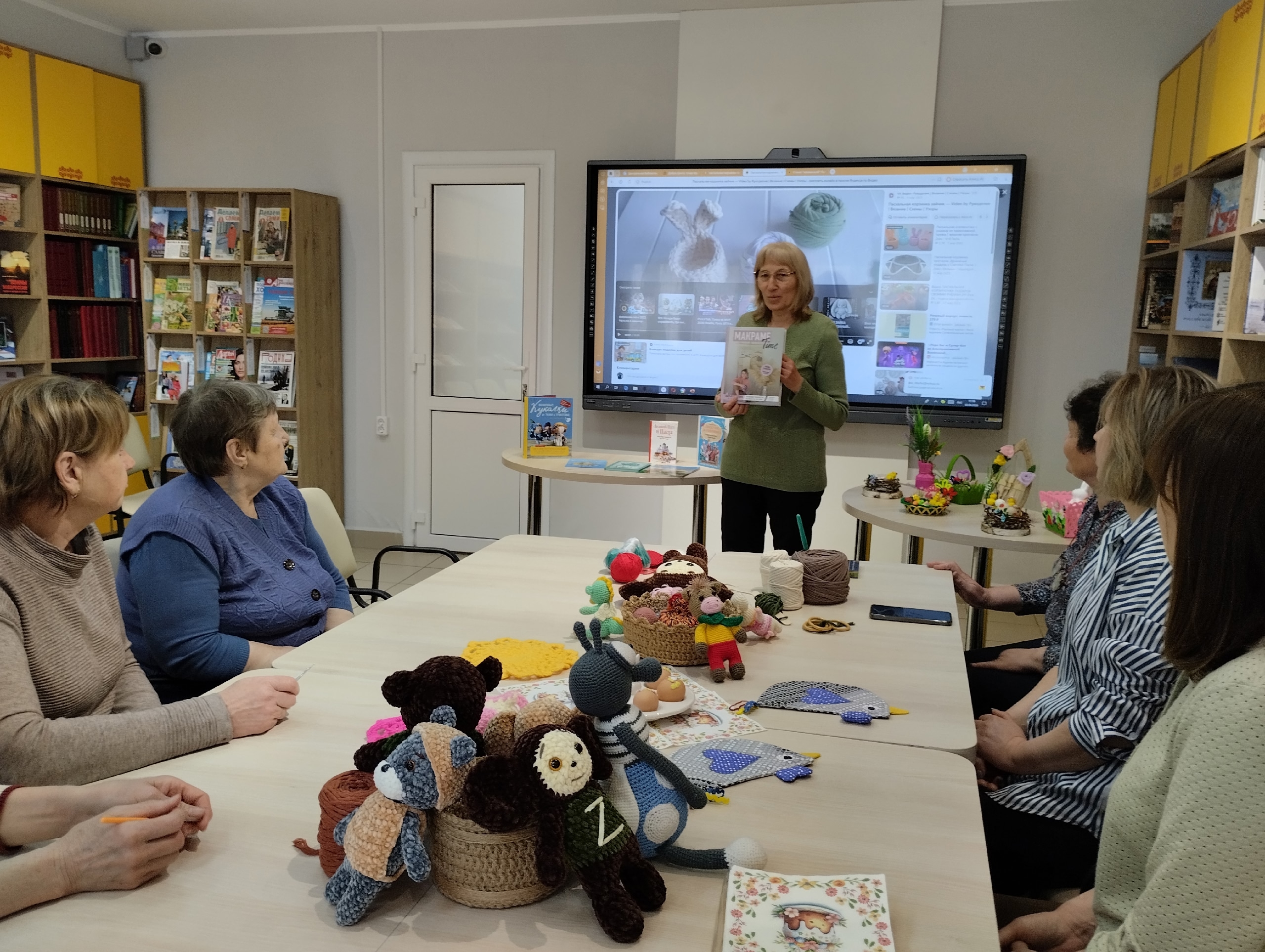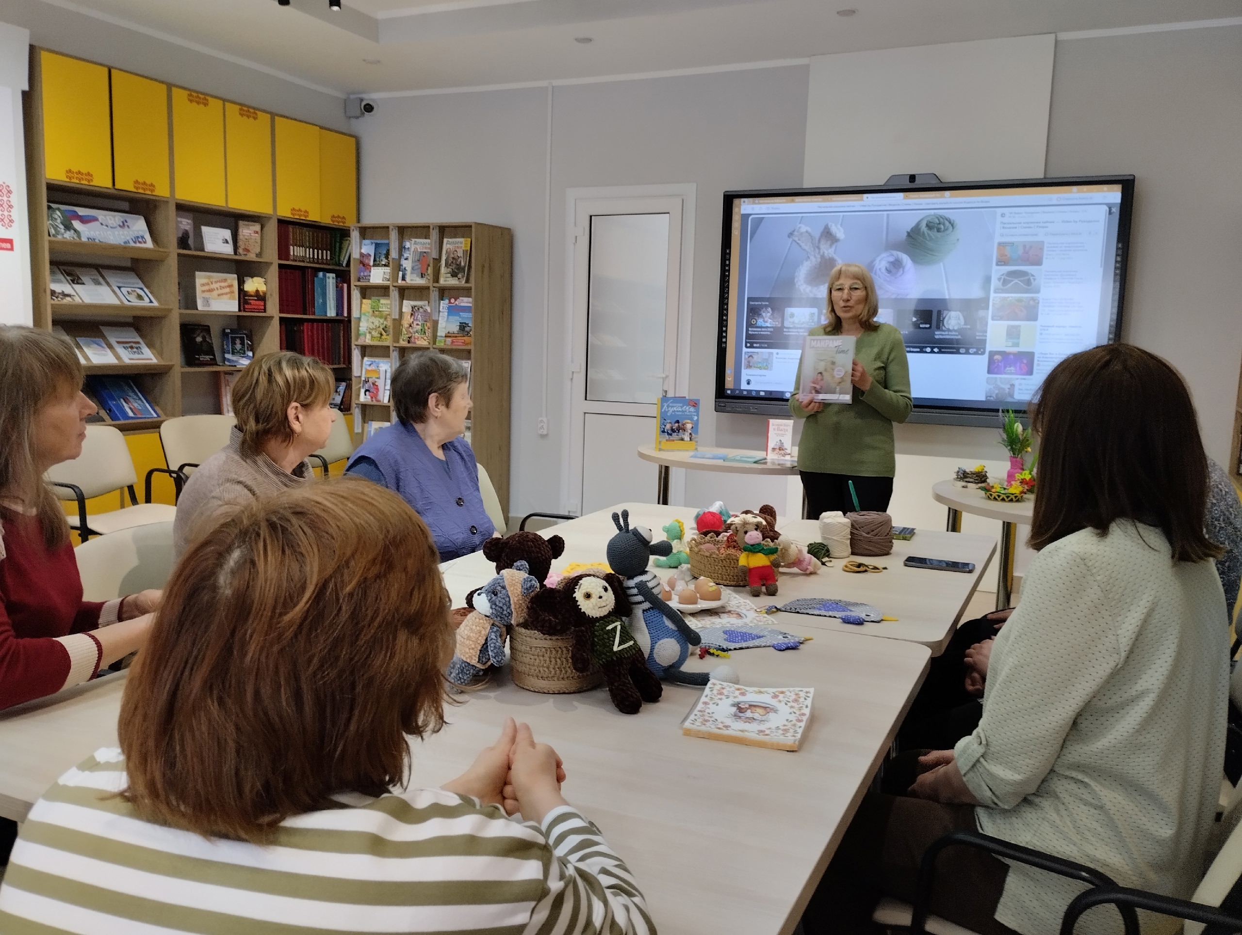 Особую атмосферу занятию придала импровизированная выставка поделок на пасхальную тему. Авторами работ выступили «серебряные» волонтёры Ибресинского ЦСОН и участницы Центра общения старшего поколения «Серебряный возраст» (действует при клиентской службе Социального фонда России в Ибресинском муниципальном округе). Их творческие работы вдохновили всех присутствующих на новые идеи. В завершение встречи Галина Степанова, главный библиотекарь отдела обслуживания, познакомила гостей с тематической подборкой книг по рукоделию. В изданиях можно найти как базовые схемы вязания игрушек амигуруми и макраме, так и необычные идеи для пасхального декора.