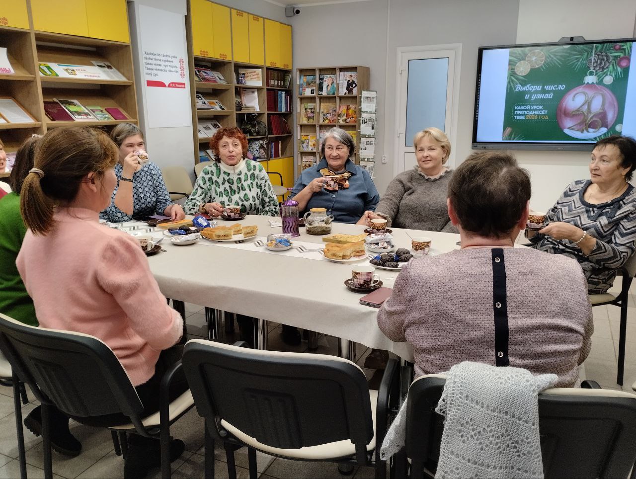 Участники — члены библиотечных клубов по интересам «Берегиня» и «Креатив» — окунулись в атмосферу праздника. Они вспомнили старинные рождественские традиции, а затем проверили свои знания в необычной викторине «Физика Рождества». Её вопросы помогли найти научное объяснение зимним чудесам: почему скрипит снег, как устроена электрическая гирлянда и почему так красиво горят бенгальские свечи. Продолжилась встреча поэтическим квизом «Угадай автора по строчкам». А каждый гость получил личное новогоднее предсказание на 2026 год.